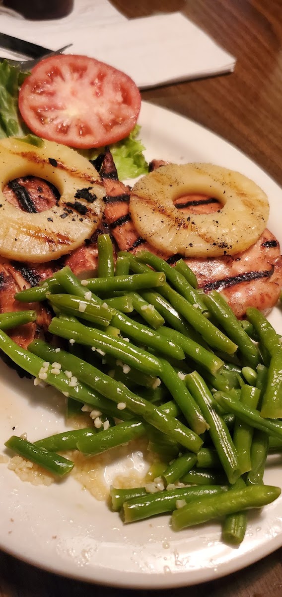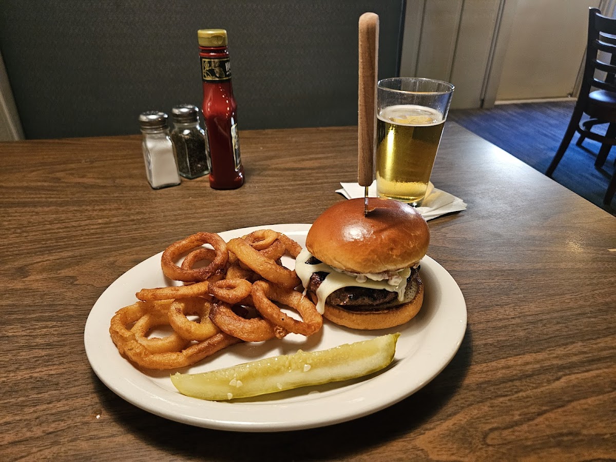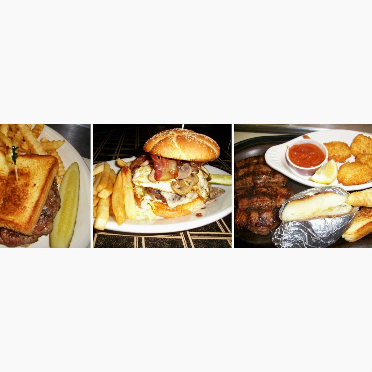 Pretty good spot that's been around for years ! This is our first time and we will definitely be back. We walked in and were greeted by everyone we passed. We were told to seat ourselves. It was starting to get busy and I was worried it was going to be long wait for service and or food. Yhe atmosphere had 80 and 90s rock playing and you can hear sports the screens even with all of th people and the hustle and bussle.of the kitchen, it was still a pretty decent volumn in the restaurant. I am not sure our waitress name (she never gave it) but she was awesome. I ordered a 6 oz (medium cook)sirloin with green beans and rice pilaf that came with texas toast. My husband ordered a double cheese burger, added bacon, lettuce, tomato,pickle and mustard with fries. The food came out very fast, the waitress was nice and attentive. The cook on my steak was a tad over done but nothing worth complaining about. It was very flavorful and didn't need the A1 I asked for. The green beans could have used a little salt and less garlic if you are partial to garlic but were good. My husbands burger was cooked to perfection and humungous. Each patty was 1/3 lb and super juicy. He couldn't even finish it. He did try. Everything came to about $27 without any drinks other than a Sprite.